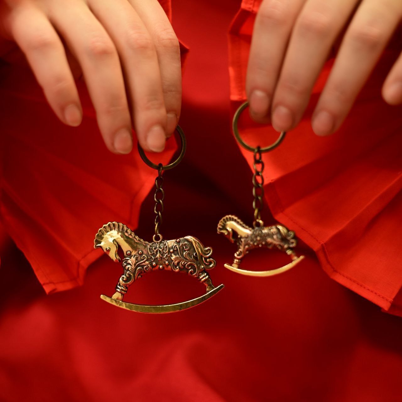 Они приглашают к игре - головка у матрешек крутится, лошадки-подвески катаются на подвижных колёсиках, а под вставками из хрусталя переливаются узоры как в калейдоскопе.